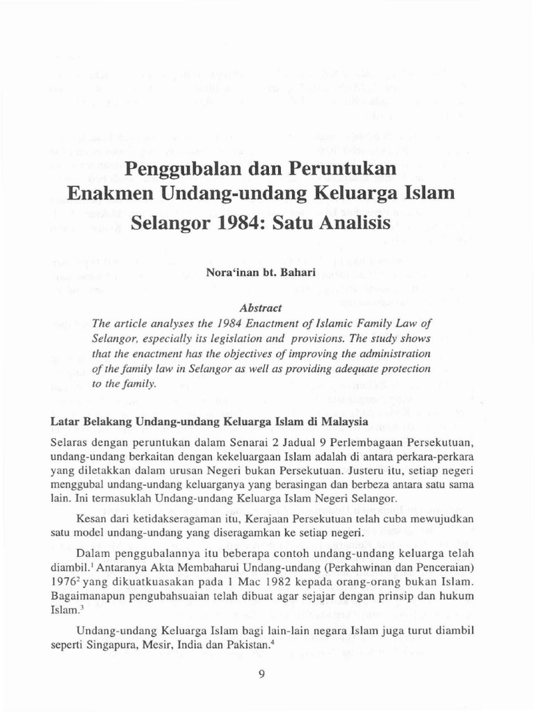 Penggubalan Dan Peruntukan Enakmen Undang Undang Selangor 1984 Ms 9 22 Pdf