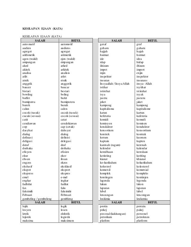Ejaan istihar yang betul. Kedayaserapan ulang kaji - pengulangkajian KESILAPAN EJAAN KATA SALAH BETUL SALAH BETUL auto matif audien agreget arithmetik. Kenal pasti jenis kesalahan yang hendak dibetulkan sama ada kesalahan ejaan kesalahan imbuhan kesalahan istilah atau kata atau kesalahan tatabahasa. Kenal pasti jenis kesalahan yang hendak dibetulkan sama ada kesalahan ejaan kesalahan imbuhan kesalahan istilah atau kata atau kesalahan tatabahasa.