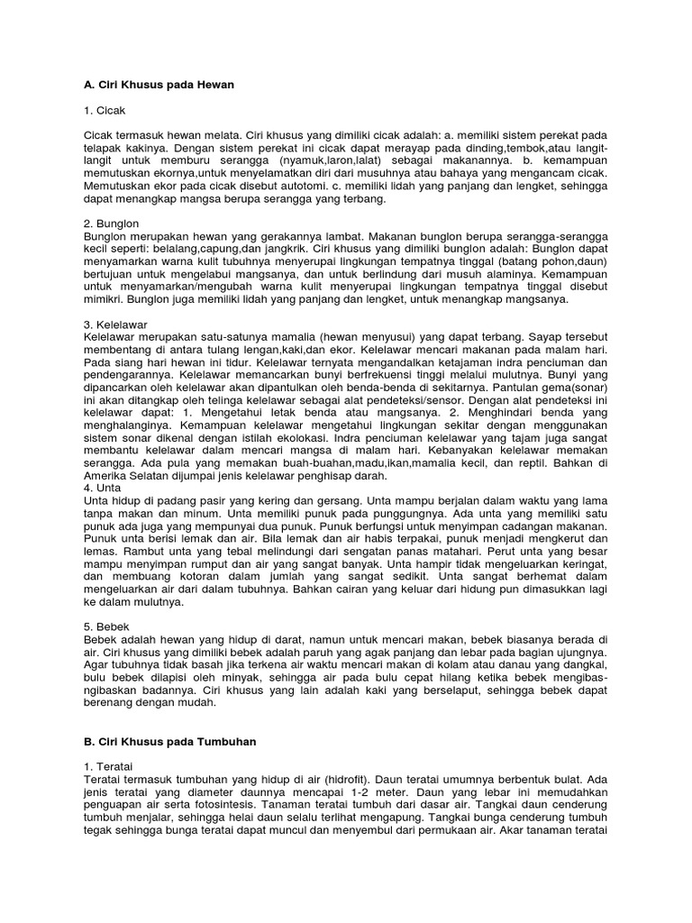 Ciri Khusus Hewan Dan Tumbuhan Pdf