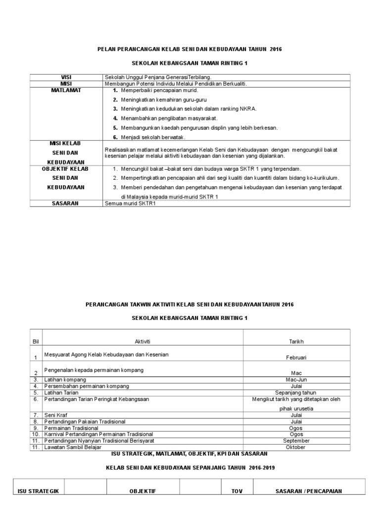 Contoh Pelan Strategik Dan Taktikal Kelab Keseniaan Dan Kebudayaan Pdf
