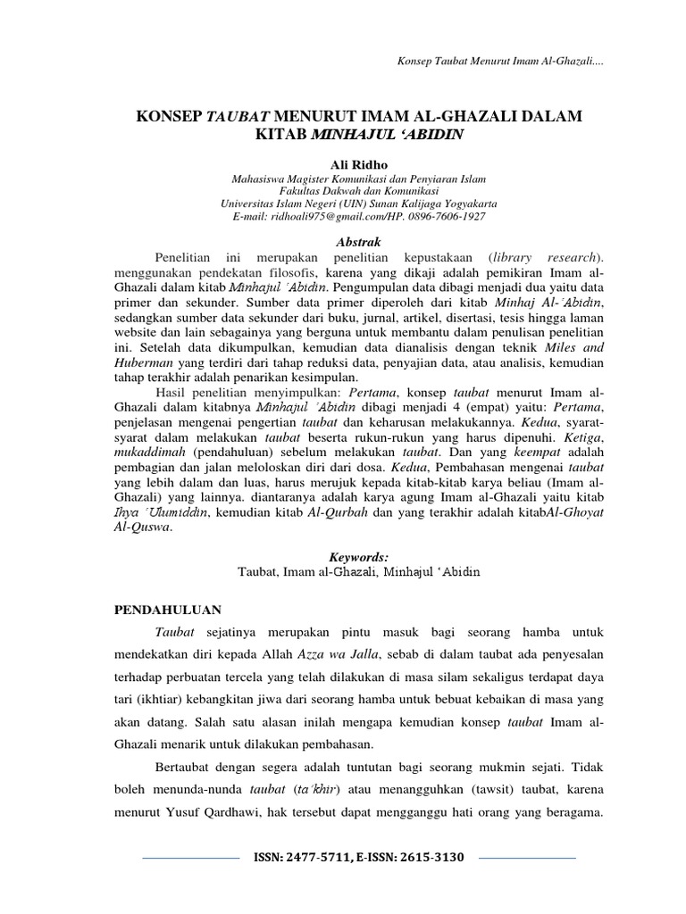Konsep Taubat Al Ghazali Minhajul Abidin Pdf