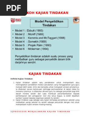 Somekh 1989 Kajian tindakan ialah satu kajian terhadap situasi sosial yang melibatkan. 15 Model Kajian Tindakan 5 16 Perkembangan Kajian Tindakan 7 17 Kajian Tindakan di Malaysia 8 18 Budaya Penyelidikan Dalam Kalangan Guru 10 19 Rumusan 11 Bab 2.